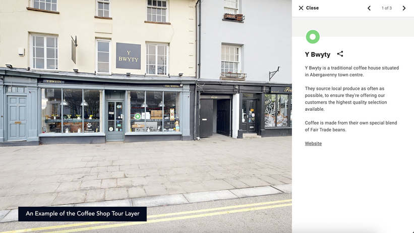 Abergavenny is rich in coffee shops. We are building a coffee shop tour within our immersive model.